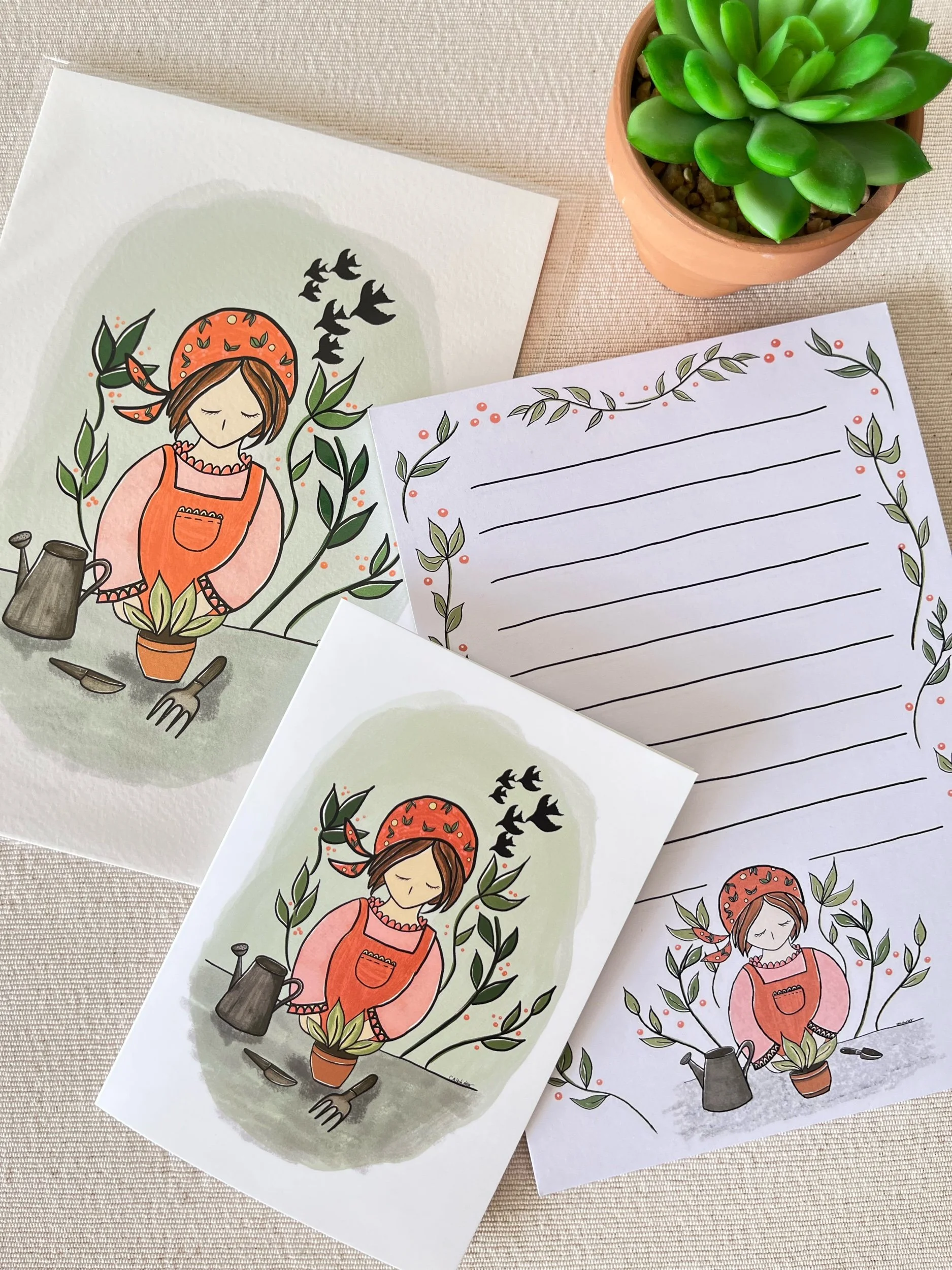 Perfect gift for the special gardener in your life. A5 giclee art print, A5 50 page notepad and A6 size greeting card. Design is digitally hand drawn and printed in the UK.